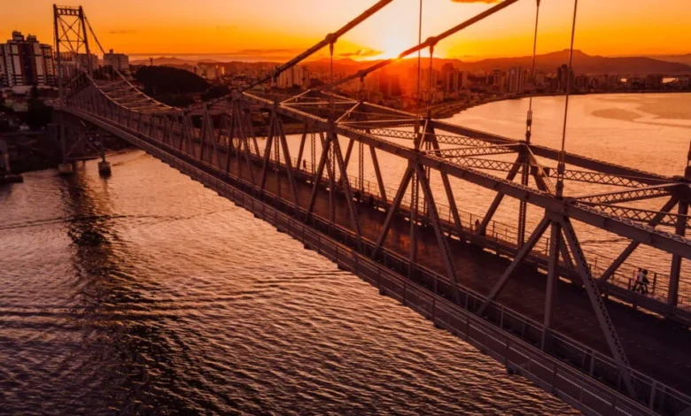 Ponte Hercílio Luz: o principal cartão-postal da cidade, símbolo da conexão entre o passado e o presente, especialmente bonita ao pôr do sol.