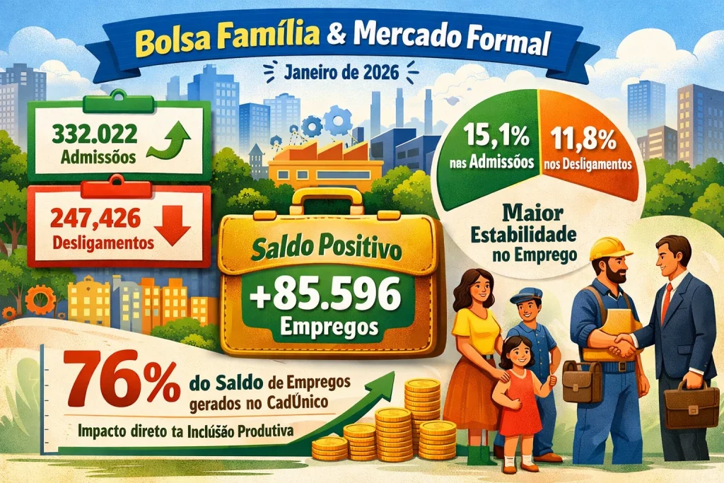 Os dados de janeiro de 2026 confirmam uma tendência importante no Brasil: programas sociais como o Cadastro Único e o Bolsa Família não apenas auxiliam na renda, mas também funcionam como pontes para o emprego formal.