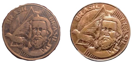 Um exemplo emblemático disso foi quando, em 2012, a Casa da Moeda emitiu a face da moeda de R$ 0,05 nos moldes da moeda de R$ 0,50.
