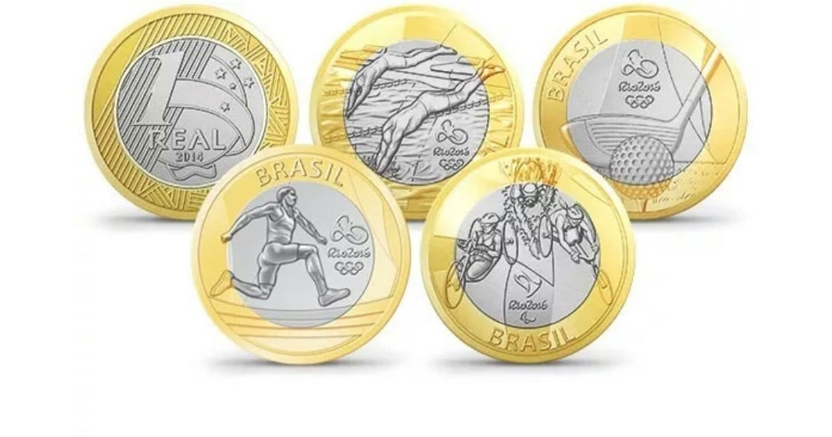 A moeda de 1 real, que simboliza o atletismo de 2014, pode ser encontrada por até R$ 35. Já a moeda com a bandeira olímpica pode chegar a valer R$ 250.