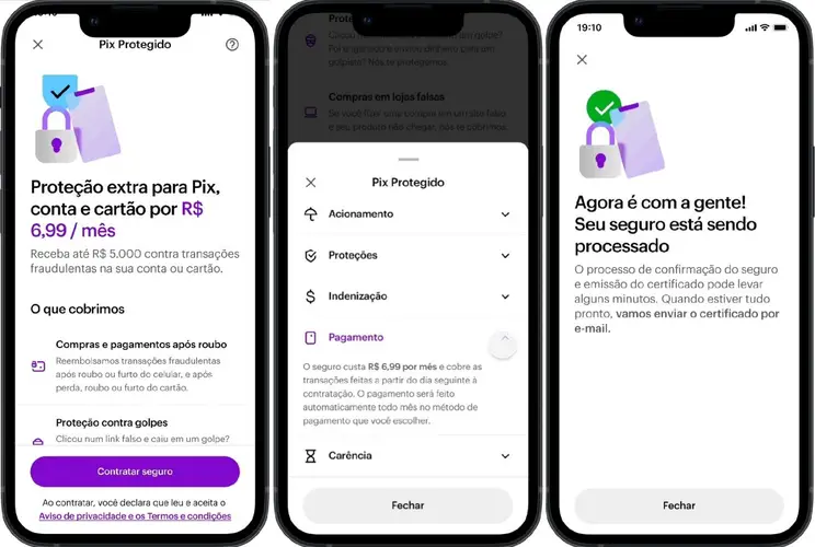 De acordo com o Nubank, o seguro permite até quatro ocorrências por ano, oferecendo reembolso em situações em que o cliente é vítima de fraude comprovada. A contratação pode ser feita diretamente pelo aplicativo, dentro do hub de seguros Nubank, em poucos passos: