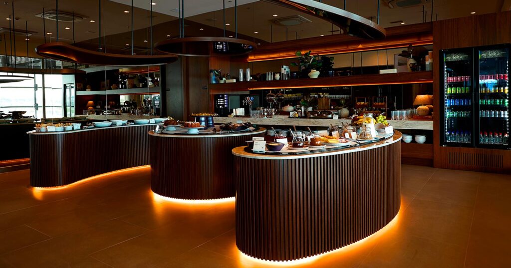 Entre os destaques da sala, estão o buffet completo e o bar de drinks exclusivos, além de espaços privativos para quem deseja mais silêncio ou privacidade. Para os viajantes que estão com crianças, há áreas adaptadas, como fraldário, espaço para amamentação e uma sala de jogos para os pequenos. Um toque que faz toda a diferença para quem não quer abrir mão do conforto mesmo em aeroportos movimentados.