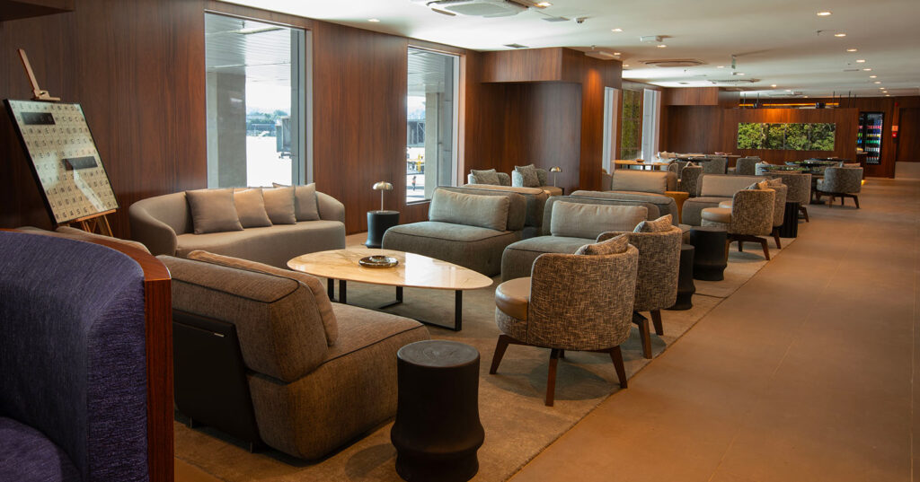 Localizada estrategicamente em frente aos portões de embarque 329 e 330, a sala VIP ocupa uma área de 1.000 metros quadrados e pode receber até 185 passageiros ao mesmo tempo. O ambiente é pensado para diferentes perfis de viajantes: desde quem viaja a trabalho e precisa de estações de trabalho com internet rápida, até quem viaja em família e busca espaços de convivência confortáveis.