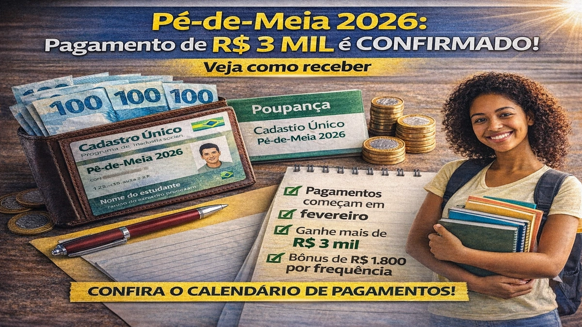 O Ministério da Educação (MEC) confirmou o calendário oficial do Pé-de-Meia 2026, programa que garante incentivo financeiro a estudantes do ensino médio da rede pública.