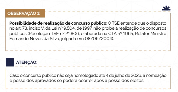 As orientações do Tribunal Superior Eleitoral (TSE) reforçam que a realização de concursos segue liberada, inclusive em períodos próximos ao pleito.