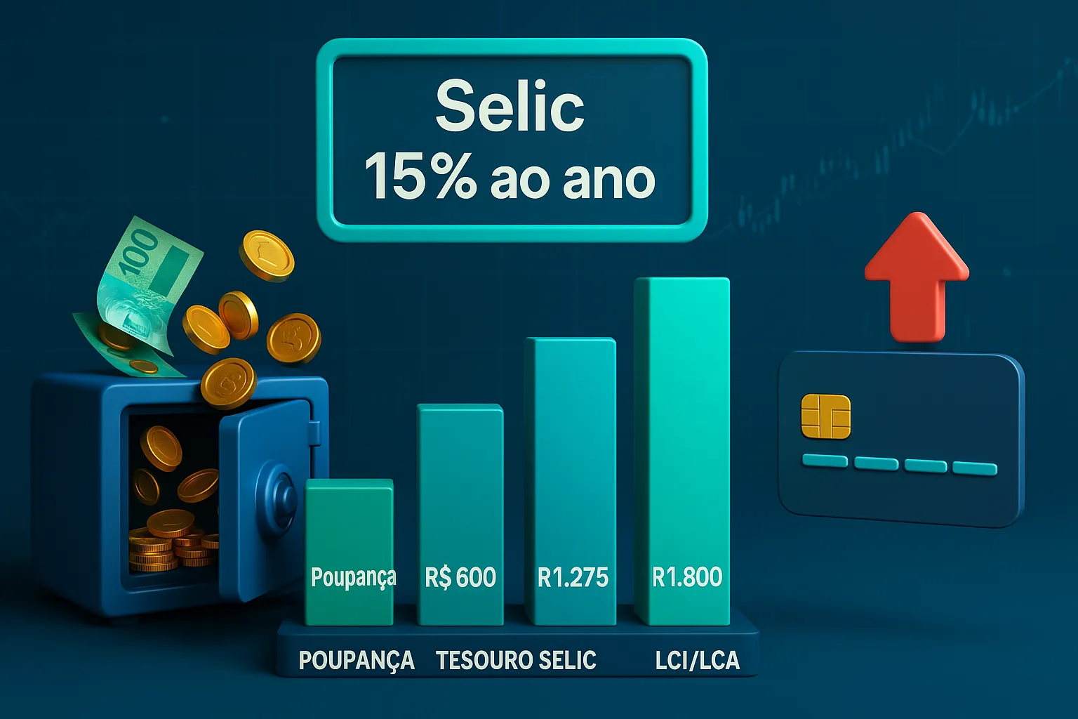 Agora vamos ao que realmente interessa: o que acontece com o seu dinheiro parado na poupança — ou em qualquer outro investimento — quando a Selic está em 15% ao ano?